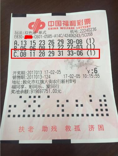 2月5日晚,第2017013期中国福利彩票双色球开奖,当期双色球红球号码为08、11、28、29、31、33,蓝球为06。这是丁酉鸡年的首期双色球开奖,全国共中出一等奖10注,单注奖金为699万多元,其中吉林省喜中1注。