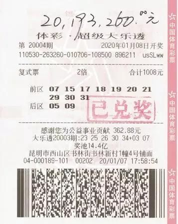 来自云南昆明的大奖得主,凭借2倍的“10+2”的复式投注,揽获大乐透奖金2019万元。