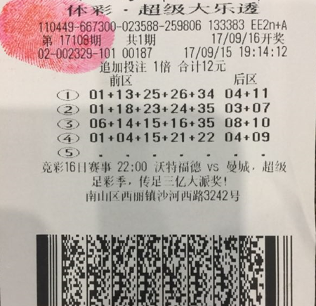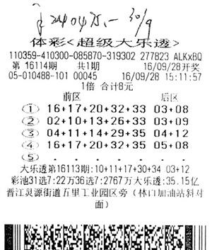 8月8日晚开奖的第16092期体彩大乐透中出2注1000万元一等奖,均落户黄浦区06083体彩网点(丽园路1028号102室),中奖彩票是两张出票相隔一天的10元5注单式票。