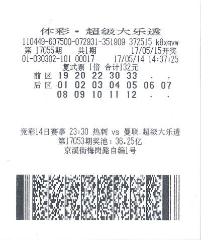 5月15日,大乐透第17055期的中奖号码为:19、20、22、30、33+03、09。广州白云区京溪街的23708号网点(销售终端号4401030302)一位彩民凭借后区全包复式投注(即“5+12”),投注金额132元,将1注一等奖、20注二等奖、45注三等奖收入囊中。