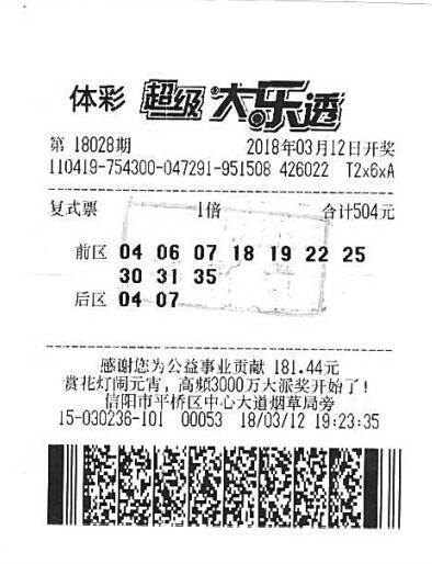 3月12日,大乐透第18028期开奖,全国中出的1注1000万元头奖,被河南彩民收入囊中,这也是我省戊戌狗年中出的首个大乐透头奖。据了解,中奖彩票出自信阳市平桥区一网点,彩票为多人合买,单票擒奖1016万元。