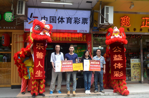 6月15日,海珠区江怡路27574网点门前热闹非凡,锣鼓,横幅、喜报,鲜花把这个网点装点的喜气洋洋。引得附近的街坊停下脚步,驻足观看,有的还拿出手机拍照拍视频,他们纷纷议论:“这里出啥好事了?”“中大奖啊,你看,1699万哪!”