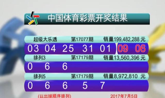 7月5日,第17077期体彩超级大乐透游戏进行了开奖,17077期开奖号码为:01 03 04 25 31 +06 09。