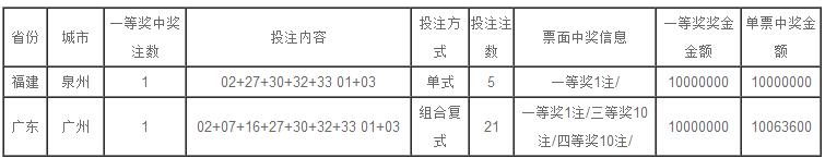 10月4日晚,第17116期超级大乐透开出2注一等奖,单注奖金1000万,这2注头奖为福建广东两地彩民所中。
