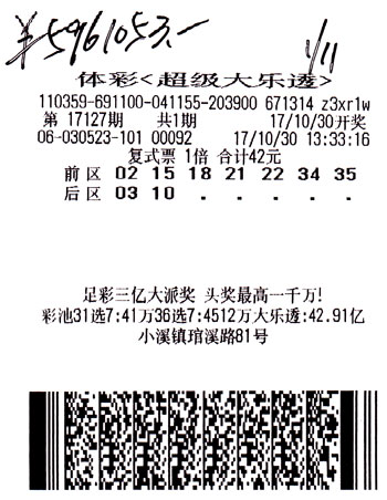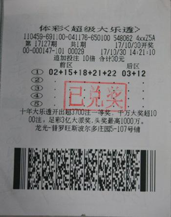 1月11日晚,超级大乐透第17132期开出中奖号码:11 17 23 26 27+01 10。当期开出共开出693注大乐透追加三等奖,单注追加奖金5905元,而在这693注追加三等奖中,有500注出自扬州江都区的10416站点,中奖金额达到2952500元。
