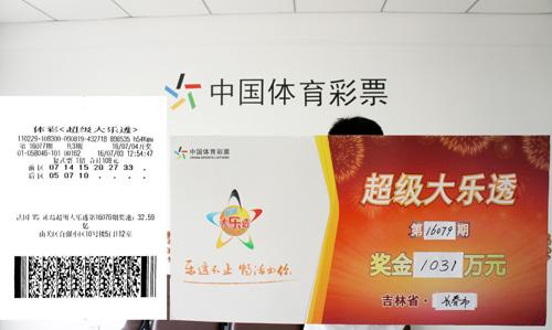继16078期松原市彩友喜中大乐透1653万后,仅隔两天,长春市彩友再显神威,收获16079期头奖1031万元。
