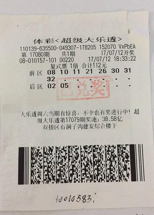 7月12日,中国体育彩票超级大乐透第17080期开奖,当期全国共中出4注一等奖,单注奖金989万多元,其中河北承德以彩民喜中一等奖1注,中奖站点位于双桥区石洞子沟建安综合楼下的1308010157号投注站,该站一彩民以一张112元的“8+2”复式票。