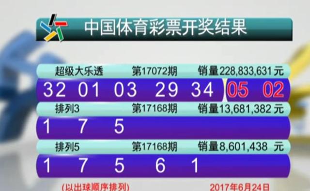 6月24日,第2017072期体彩超级大乐透游戏进行了开奖,17072期开奖号码位:01 03 29 32 34 +02 05。