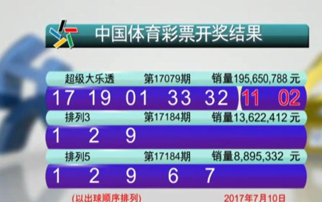 7月10日晚,第17079期体彩超级大乐透游戏进行了开奖,17079期开出中奖号码:01 17 19 32 33+02 11。