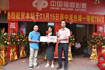 11月18日上午,新会区崖门镇崖西中心路第44122641号福彩投注站醒狮起舞,吉庆气氛洋溢,江门市福彩中心为该投注站举行庆祝活动,祝贺这个投注站中出双色球第2016134期头奖784万多元。