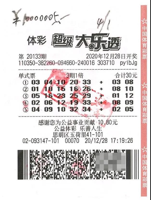 1月4日下午,来自厦门的一个家庭——64岁的父亲、母亲携儿子、儿子的女朋友乘坐高铁来到福州,在福建省体育彩票管理中心领取了1000万元大乐透一等奖。