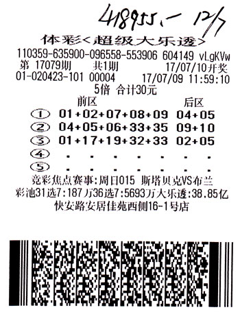 7月9日,第17079期体彩大乐透二等奖井喷。当期福建共中得8注,位于福州马尾快安路安居佳苑西侧16-1号店20423站成为当期大赢家,该站一彩民以一张3注5倍投单式票独揽5注二等奖,收获奖金418955元。