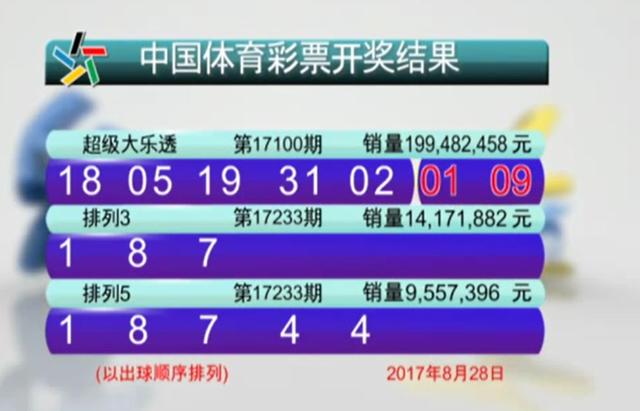 8月28日晚,体彩超级大乐透第17100期进行摇奖,本期超级大乐透摇出前区号码为:02、05、18、19、31,后区号码摇出01、09。