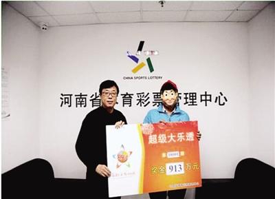 1月4日上午,来自河南安阳的王先生现身河南省体育彩票管理中心,在办理完兑奖手续后,领取他在第18001期中得的913万大乐透头奖奖金。经检验,大奖彩票售自安阳滑县枣村医院东100米的4105260040101体彩网点。