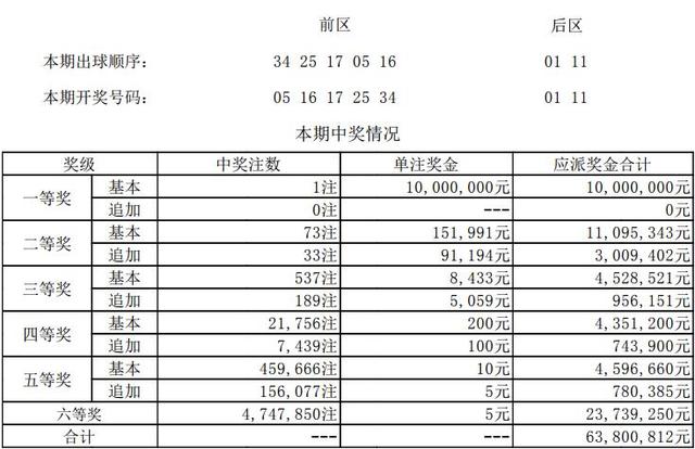 12月16日晚20点30分,中国体育彩票超级大乐透准时进行第17147期开奖直播,本期大乐透开奖号码为:05、16、17、25、34+01、11。