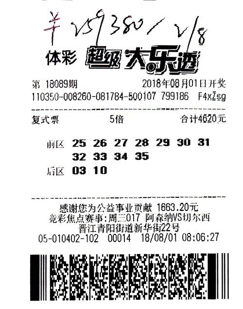 8月1日体彩大乐透 第18089期开奖,根据数据显示,福建泉州晋江青阳街道新华街22号的10402站又一次上榜,而这次中出的是9注43376元的二等奖,并且来自同一位彩民,之前是该投注站点中出1500万的36选7特等奖。