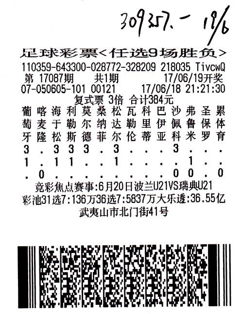 在14场胜负彩第17087期中,挪超、巴甲和联合会杯因受冷门跌爆的影响,导致了当期一、二等奖均空开,而任选九场的奖金出奇的丰厚,突破10万元,达103119元。