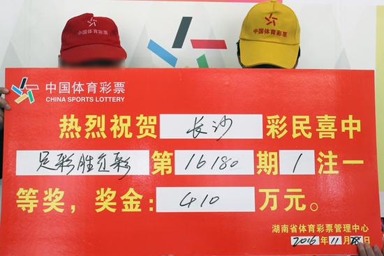 11月28日上午,位于长沙市天心区侯家塘恒力卡瑞尔大厦一楼的湖南体彩旗舰店又迎来两位彩民朋友。经工作人员询问,他们是来兑领足彩410万大奖的。而在上周一,也是两位怀化彩民来这里兑领了足彩242万元大奖。