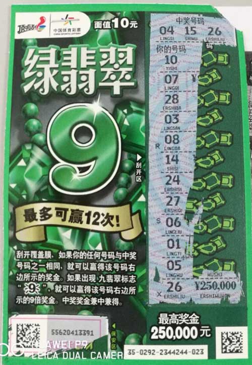 11月28日,一位年轻小伙来到吉林省体彩中心兑奖大厅,手中拿着一张面值10元的体彩顶呱刮“绿翡翠”,票面显示其中得25万大奖。小伙称中了有几天了,刚腾出时间过来兑奖,显得十分淡定。