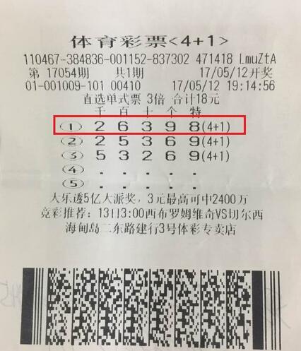 17年以来,海南体彩“4+1”好像特别眷顾海口彩民,5月12日,第17054期海南“4+1”开出“2 6 3 9 8 0 1”,海口彩民再次喜中3注13万元头奖。位于海口市海甸岛二东路建的行01009体彩投注站喜中3注头奖。