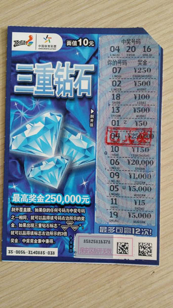 家住西藏山南的小伙平措(化名),自从一年前邂逅了彩票,便一发不可收拾,买彩成了他工作之余的最大乐趣。近日,买彩一年多的平措,就收到体彩顶呱刮“三重钻石”就回馈了他25万大奖。