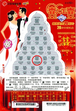 11月14日,广州花都区新华街曙光路9号43铺的44011552投注站传来喜讯,老主顾小赵凭借一张面值10元的“喜上加喜”刮刮乐彩票一举擒获20万元大奖。