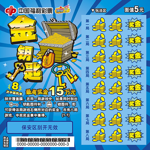 刮刮乐又有新票上市啦!继“一刮千金”后,一款名为“金钥匙”的全新刮刮乐今日正式登陆湖南省。