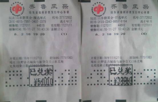 11月27日,山东省菏泽市巨野县彩友中奖者王先生以一注4倍任四和一注围四投注方式进行投注,这两种投注方式让王先生中得群英会4注任四奖金3880元和一注围四奖金5000元,合计奖金8880元。