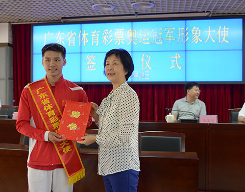 2017年5月25日下午,广东省体育彩票中心正式聘请2012伦敦奥运会及2016年里约奥运会羽毛球男双冠军傅海峰、2016里约奥运会女子20公里竞走冠军刘虹、以及2016年里约奥运会男子双人10米台冠军、。