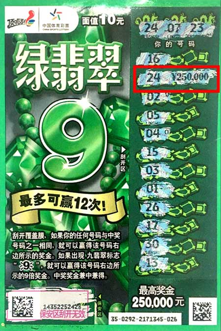 近期,随着气温的不断升高,山东开始进入盛夏时节。越来越多的市民将户外活动转移到了室内,集娱乐休闲一体的体彩投注站则成了市民避暑娱乐的好去处。前不久,德州市宁津县20123投注站最近传来喜讯,进店避暑的彩民小张幸运刮中“绿翡翠”头奖,中得奖金25万元。