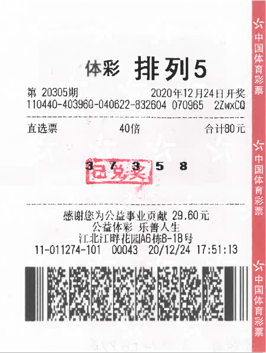 中了总奖金达400万元的体彩排列5大奖,在惠州工作的李先生,将这个喜讯连瞒了妻子6天。