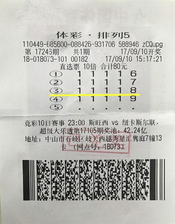 11月22日,排列五又爆倍投百万巨奖!位于顺德乐从新华路A148号的体彩投注站传出喜讯,当晚第18319期排列五开奖,该网点一位购彩者中得30注一等奖,合计300万元。