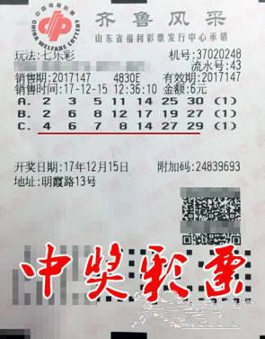 12月15日晚,位于青岛市明霞路13号的福彩37020248投注站彩民在七乐彩第2017147期开奖中,斩获一注奖金193万余元七乐彩头奖。