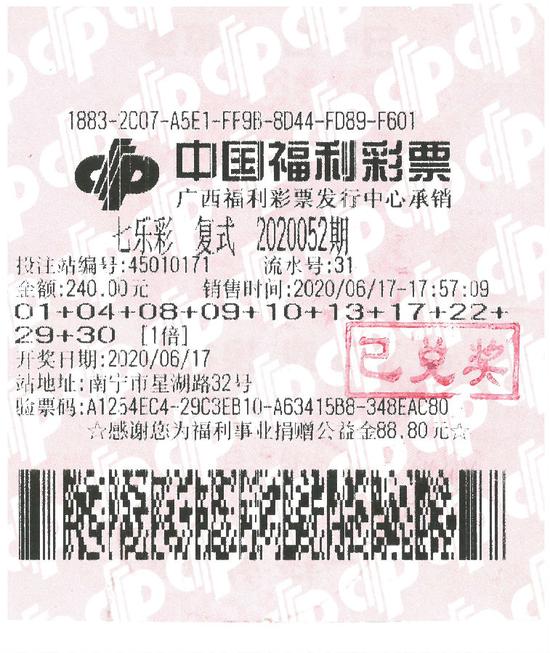 在2020052期中国福利彩票七乐彩游戏开奖后,坐落在南宁市星湖路32号的福彩45010171投注站中出该期广西唯一一注七乐彩一等奖,中奖金额48万多元!