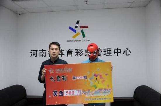 5月7日,湖南娄底彩友江先生独自一人来到省体彩中心,领走7星彩头奖500万元。