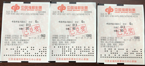 11月26日是周一,唐先生一早就拿着3张中了大奖的3D彩票到昆山市福彩中心兑奖。