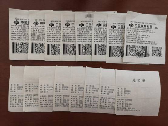 11月3日,邵阳惊爆该市有史以来3D最大奖416万元。11月4日上午,福彩43099507站点业主陪同中奖彩民持16张彩票前往邵阳市福彩中心兑奖。中奖彩票每张都以“557”单选250倍进行投注,16张