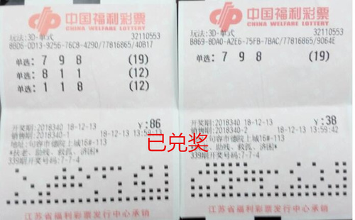 前几天,彩民王先生来到无锡市福彩中心兑奖,当工作人员问到中了多少奖金,王先生笑着说,“不多,18万。”原以为王先生中的是双色球二等奖的工作人员,看到王先生手中的彩票后大吃一惊,这是两张福彩3D中奖彩票,合计奖金18.5万多元。