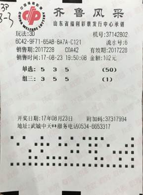 8月6日,福彩3D第211期开奖,当期开奖号码为“123”,南京彩民关先生喜中大奖20800元。