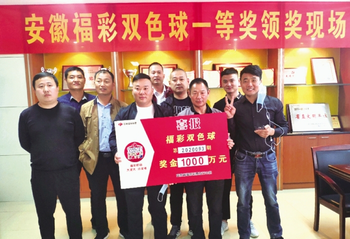 9月22日,在双色球第2020093期的开奖中,安徽省宿州30人合买团以1张330元“3胆11拖加1蓝”的双色球胆拖号码票,喜中一注千万头奖,总奖金1008.9余万元。
