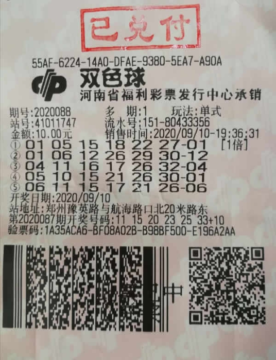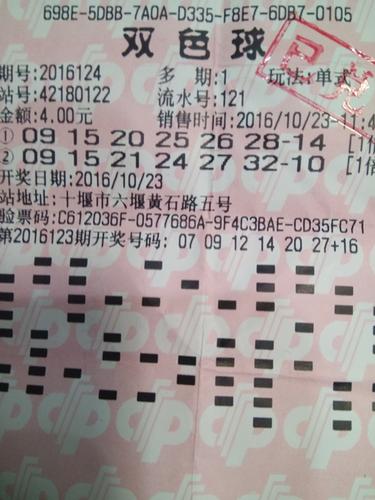 10月23日,福彩双色球第16124期开出09、15、21、24、27、32+10的大奖号,当期湖北十堰彩民凭借一张4元的投注票,幸运收获了湖北省唯一的一注头奖。