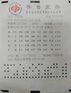 2017年1月1日,是新一年的第一天,也是第2017001期双色球开奖日。当天开出中奖号码:09 11 14 20 25 26 - 15。山东喜中五注二等奖,其中一注“花落”聊城,一位彩友揽获15万余元的双色球大奖,拿下2017年聊城福彩的“开门红”!