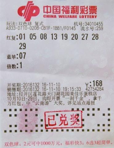 在第2016132期福彩双色球开奖中,全国中出37注一等奖,这是双色球自开展9亿元派奖以来一等奖首次出现井喷。其中21注为非复式投注,不参与派奖活动,单注奖金506万多元;另外16注为复式投注,单注奖金为1006万多元(含加奖500万元),天津彩民幸运中取了其中1注。