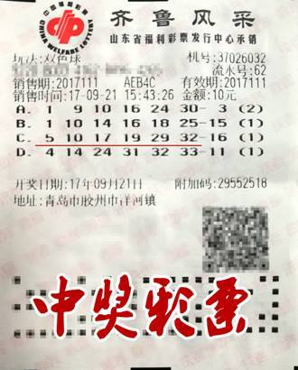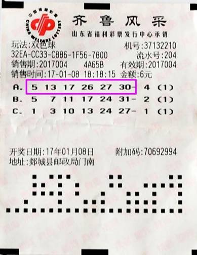 双色球第2016010期开奖,威海市一名幸运彩友,在位于荣成市崖头六区南首的37108243号投注站,5倍投注双色球,结果一举拿下5注双色球一等奖。