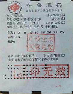 “我中奖啦!是在这里兑奖吗?” 12月30日下午刚到上班时间,两位男士一起走进潍坊福彩兑奖室,其中一位男士进门就问。