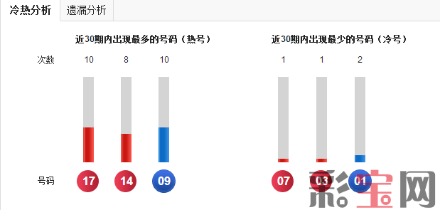 后区01已经遗漏10期,后区01同时近30期开出过3次,是近期热号之一。前区无热号,无冷号。