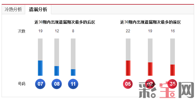 后区02已经遗漏3期,后区02同时近30期开出过7次,是近期热号之一。前区无热号,无冷号。
