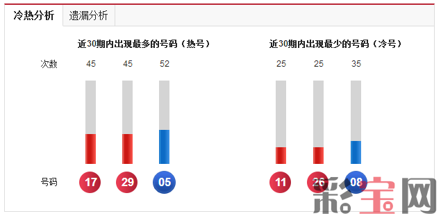 后区05已经遗漏1期,后区05同时近30期开出过8次,是近期热号之一。前区无热号,11为近期冷号。