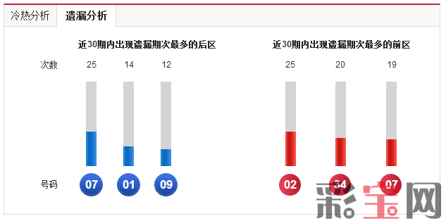 后区10已经遗漏7期,后区10同时近30期开出过5次,是近期热号之一。前区17为近期热号,无冷号。