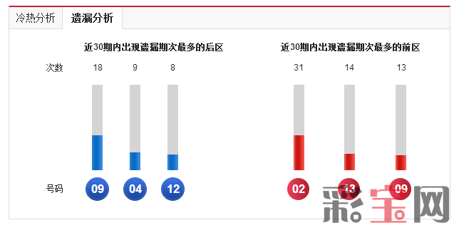 后区01已经遗漏19期,后区01同时近30期开出过2次,是近期热号之一。前区无热号,无冷号。